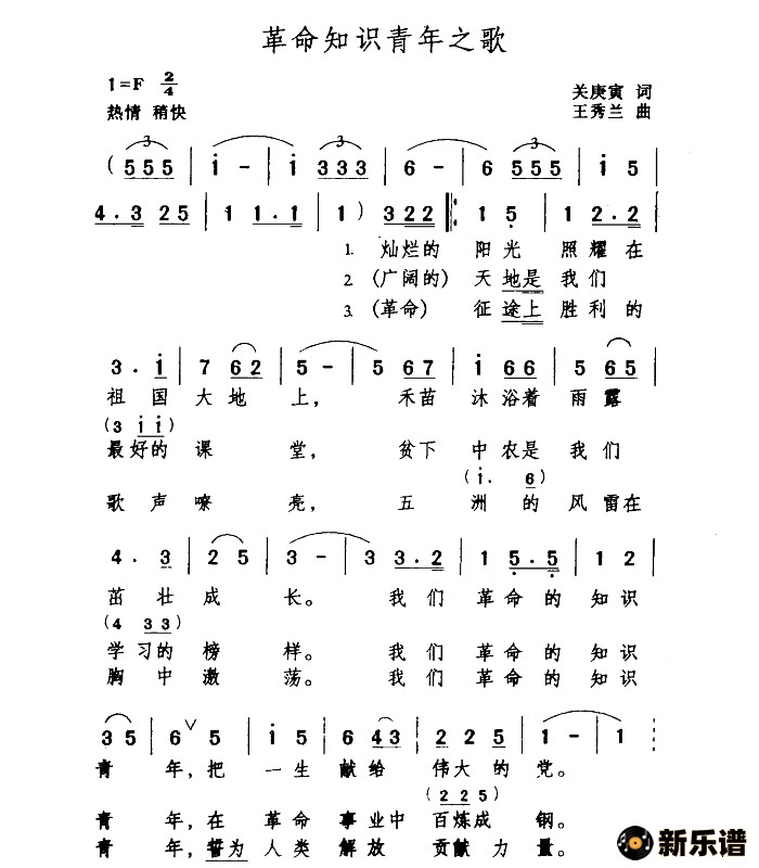 辽宁省歌舞团演唱的革命知识青年之歌歌词,革命知识青年之歌简谱.