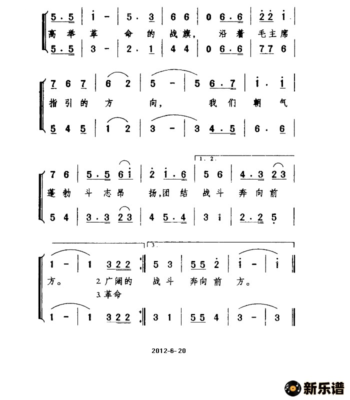《革命知识青年之歌》简谱 辽宁省歌舞团