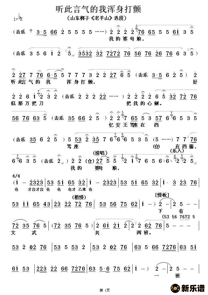 演唱的[山东梆子] 听此言气的我浑身打颤(《老山羊》选段)歌词,[山东梆子] 听此言气的我浑身打颤(《老山羊》选段)简谱.