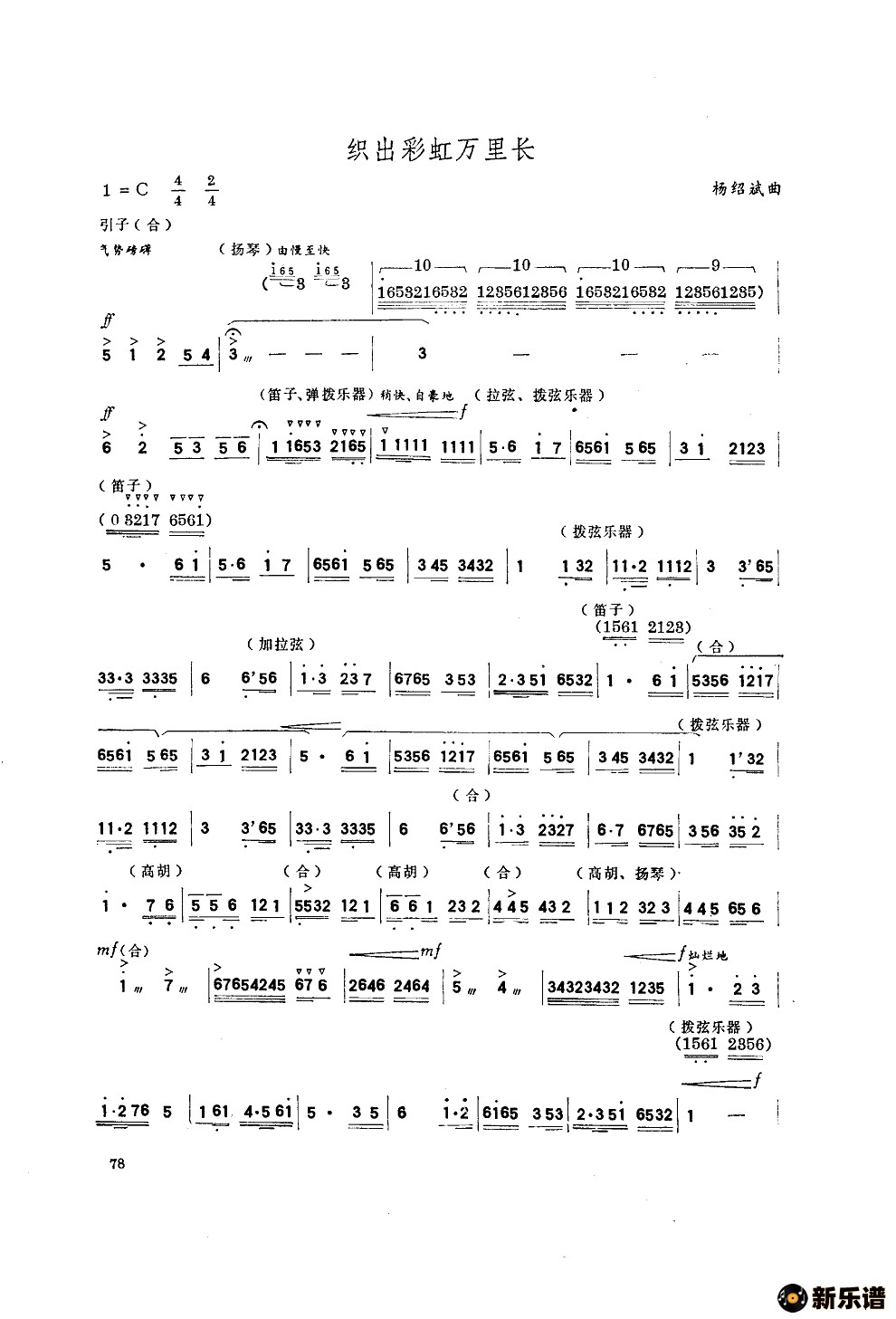 《织出彩虹万里长》简谱 广东人民艺术学院民族乐队