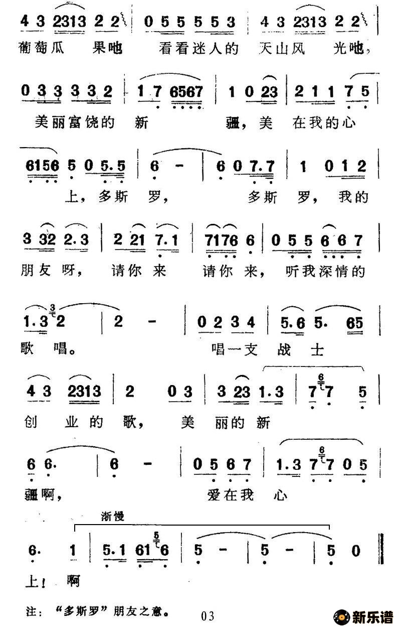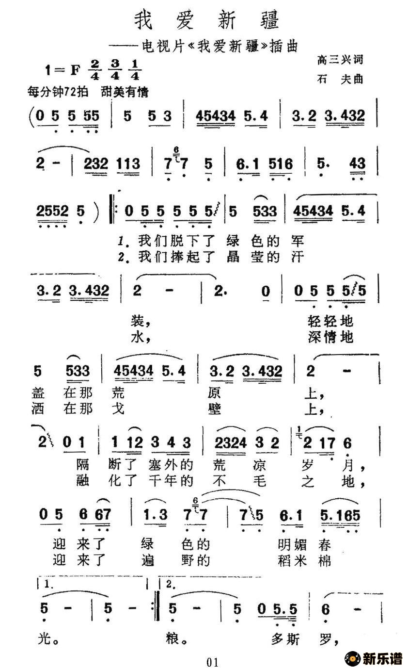 演唱的我爱新疆(电视片《我爱新疆》插曲)歌词,我爱新疆(电视片《我爱新疆》插曲)简谱.
