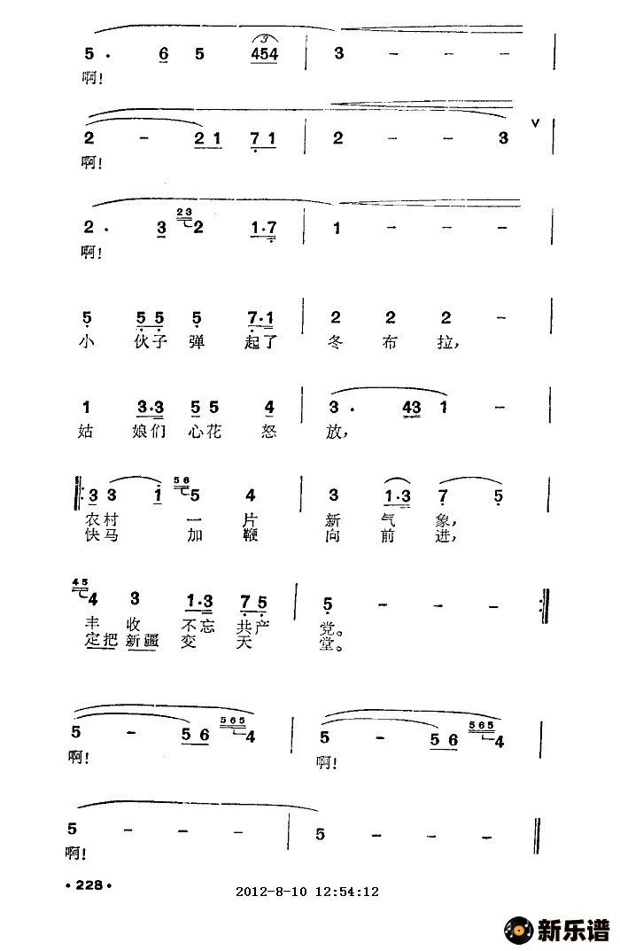 > 丰收之歌(新疆民歌)简谱
