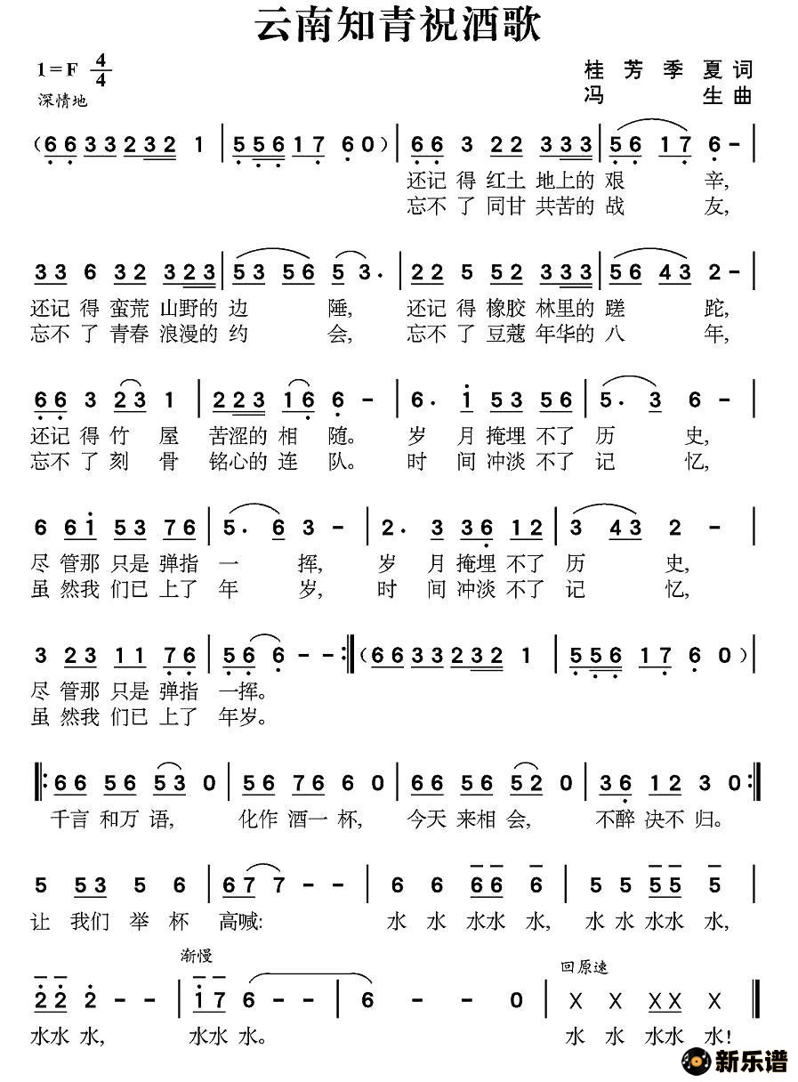演唱的云南知青祝酒歌(桂芳 季夏词 冯生曲)歌词,云南知青祝酒歌(桂芳 季夏词 冯生曲)简谱.