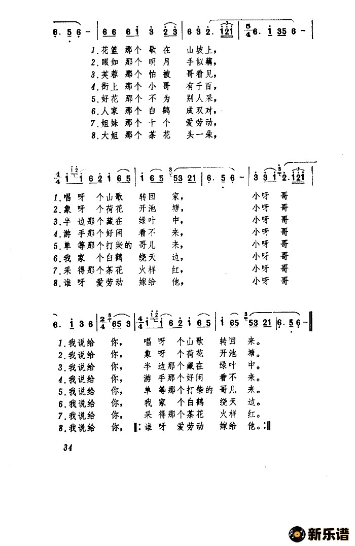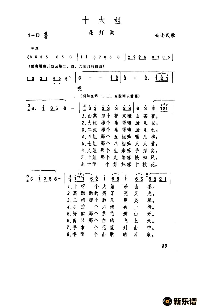 俞淑琴演唱的十大姐(云南民歌)歌词,十大姐(云南民歌)简谱.