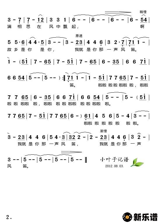 《我是你那一声风笛》简谱 刘橙橙-小叶子制谱