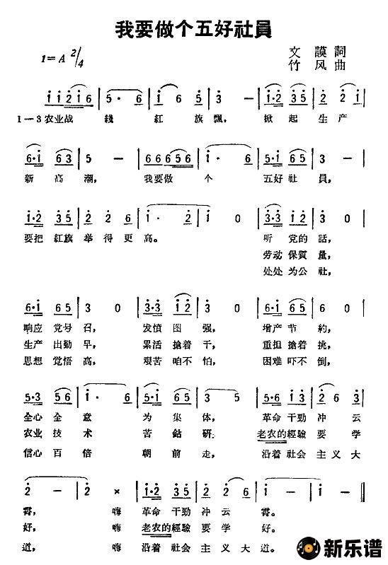演唱的我要做个五好社员歌词,我要做个五好社员简谱.
