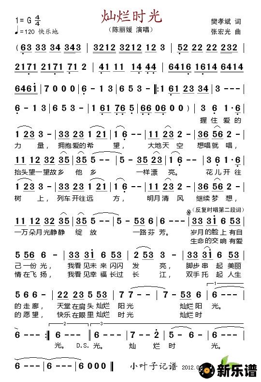 《灿烂时光》简谱 陈丽媛-小叶子制谱