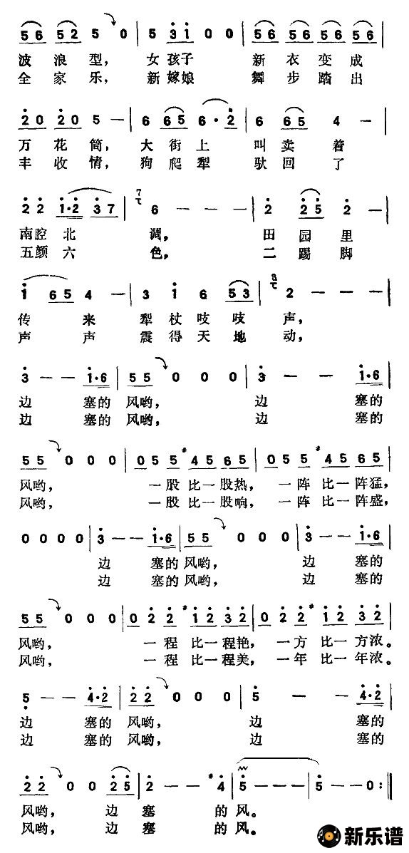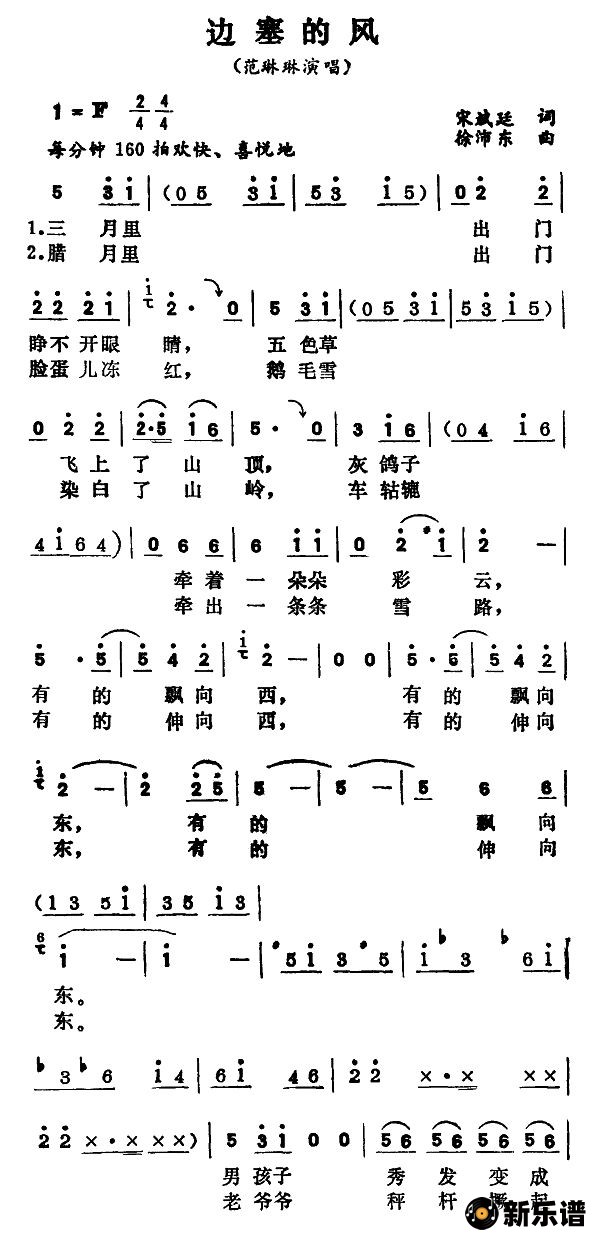 《边塞的风》简谱 范琳琳-小叶子制谱