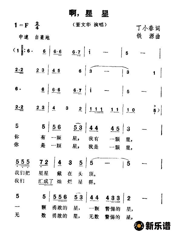 董文华演唱的啊,星星歌词,啊,星星简谱.