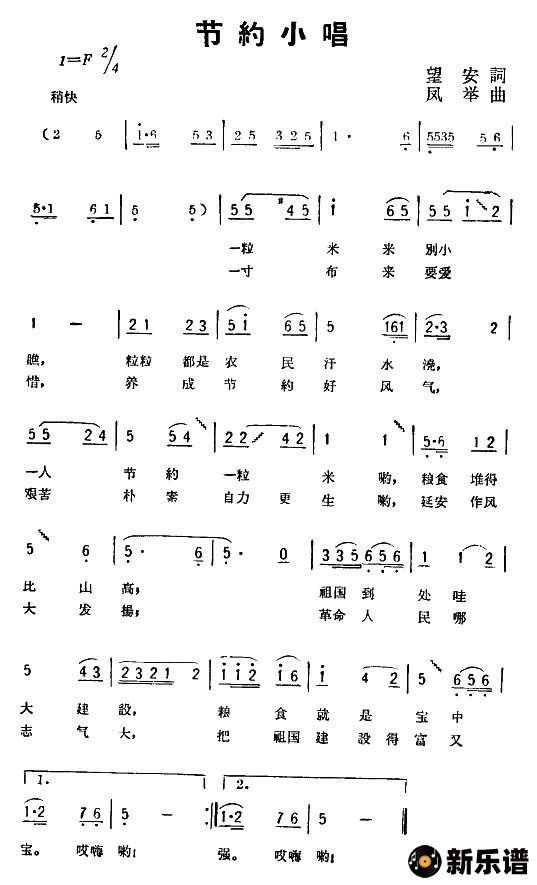演唱的节约小唱歌词,节约小唱简谱.