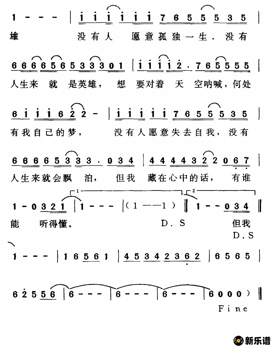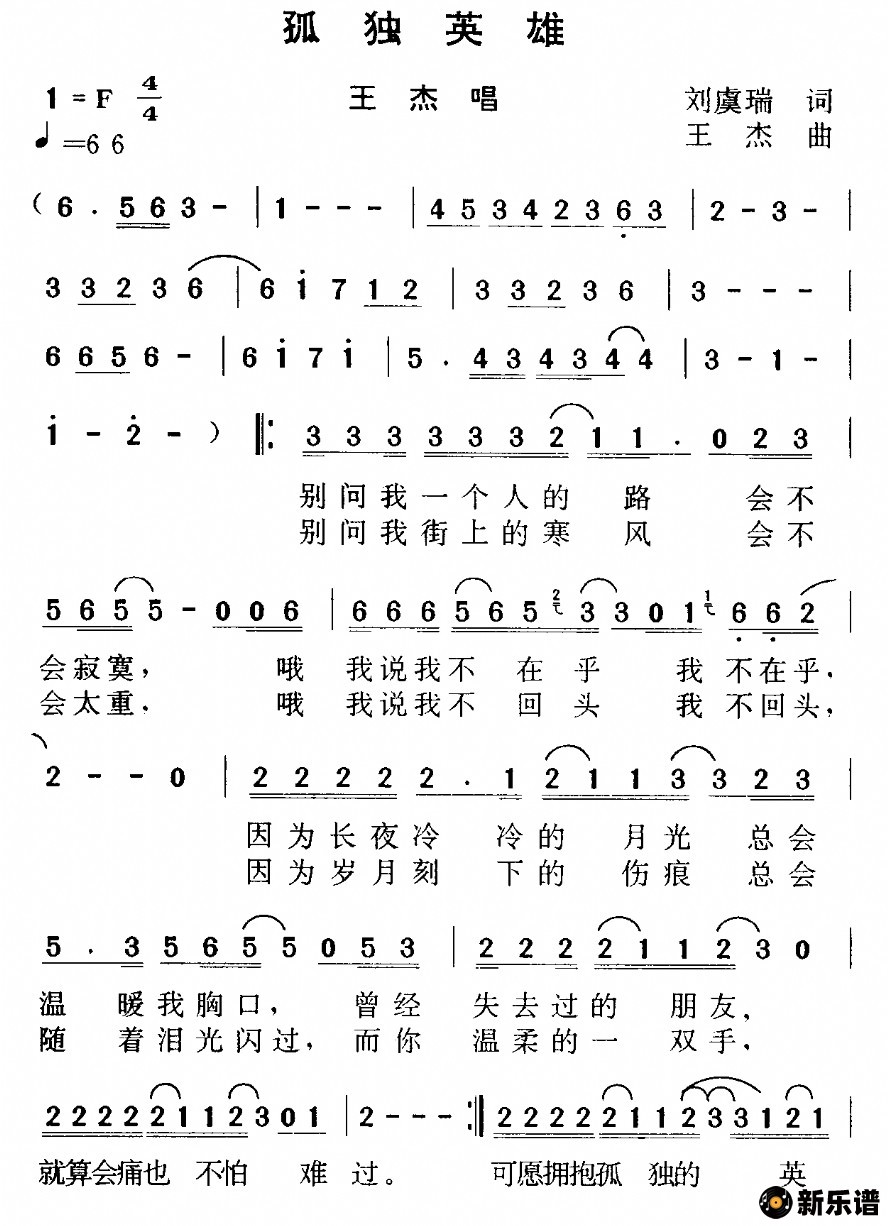 王杰演唱的孤独英雄歌词,孤独英雄简谱.