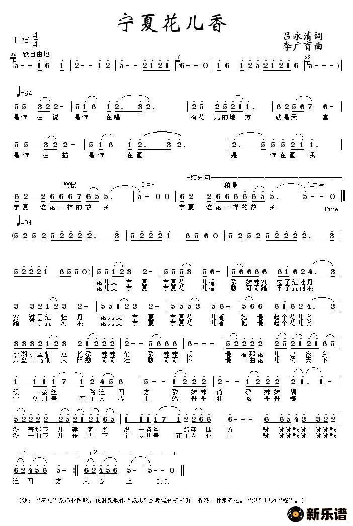 演唱的宁夏花儿香歌词,宁夏花儿香简谱.