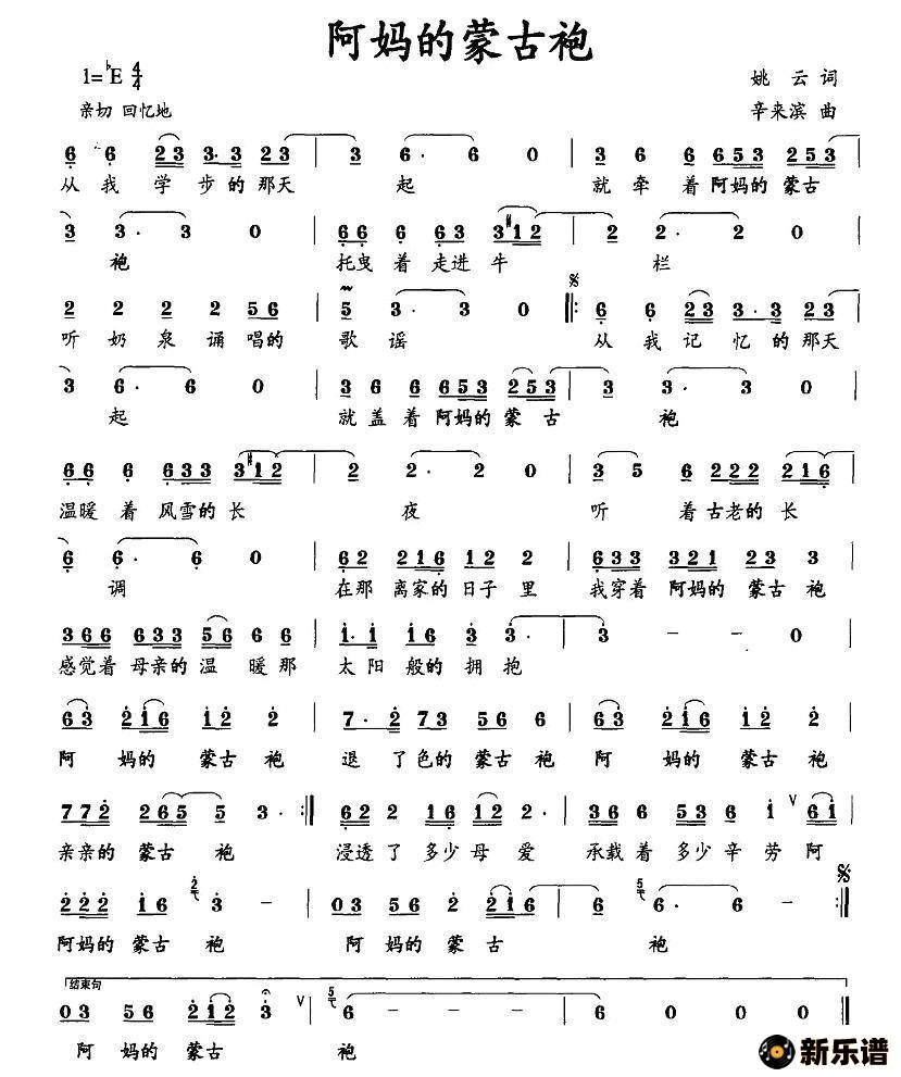 > 阿妈的蒙古袍(姚云词 辛来滨曲)简谱