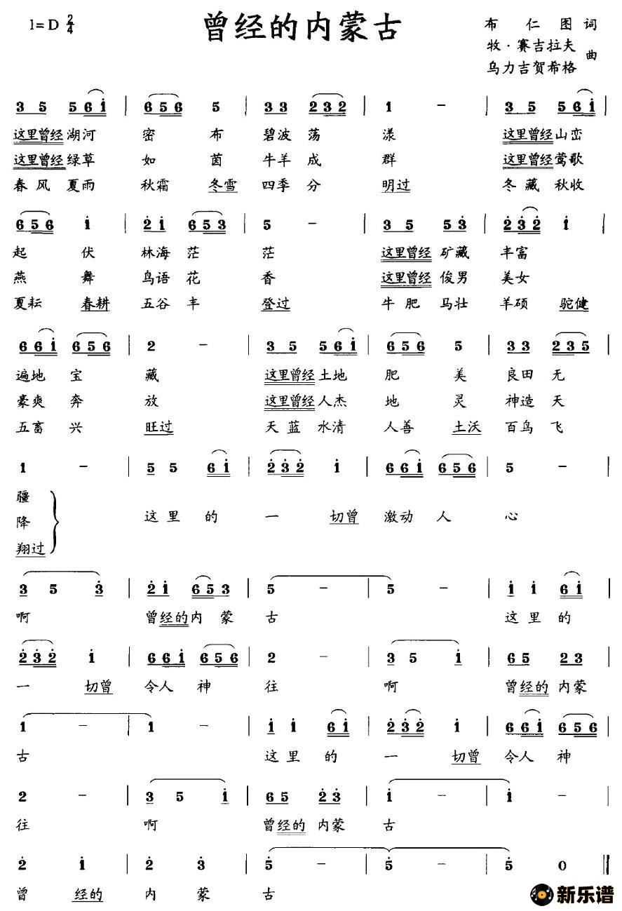 演唱的曾经的内蒙古歌词,曾经的内蒙古简谱.