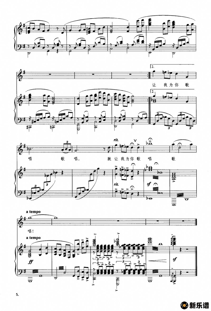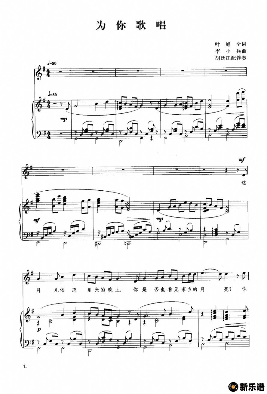 演唱的为你歌唱(钢琴伴奏谱)歌词,为你歌唱(钢琴伴奏谱)简谱.