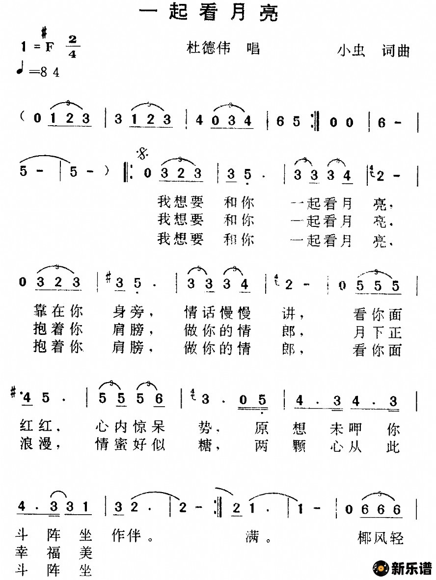 杜德伟演唱的一起看月亮歌词,一起看月亮简谱.