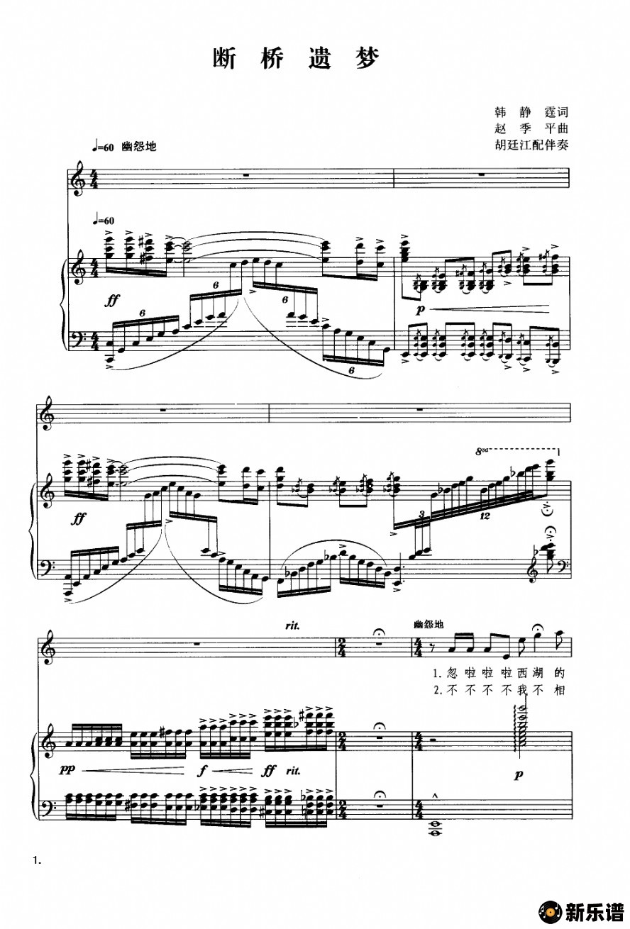 演唱的断桥遗梦(钢琴伴奏谱)歌词,断桥遗梦(钢琴伴奏谱)简谱.