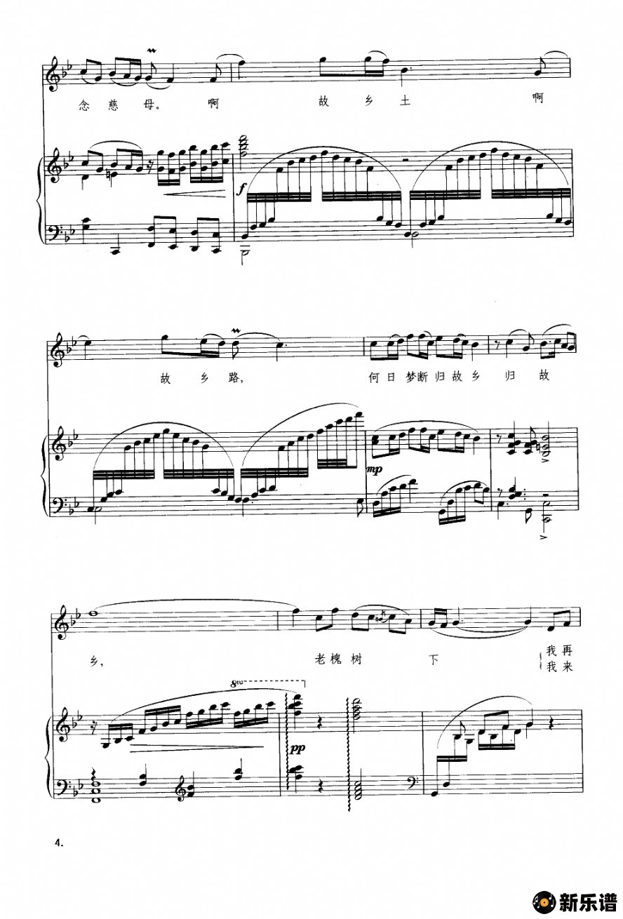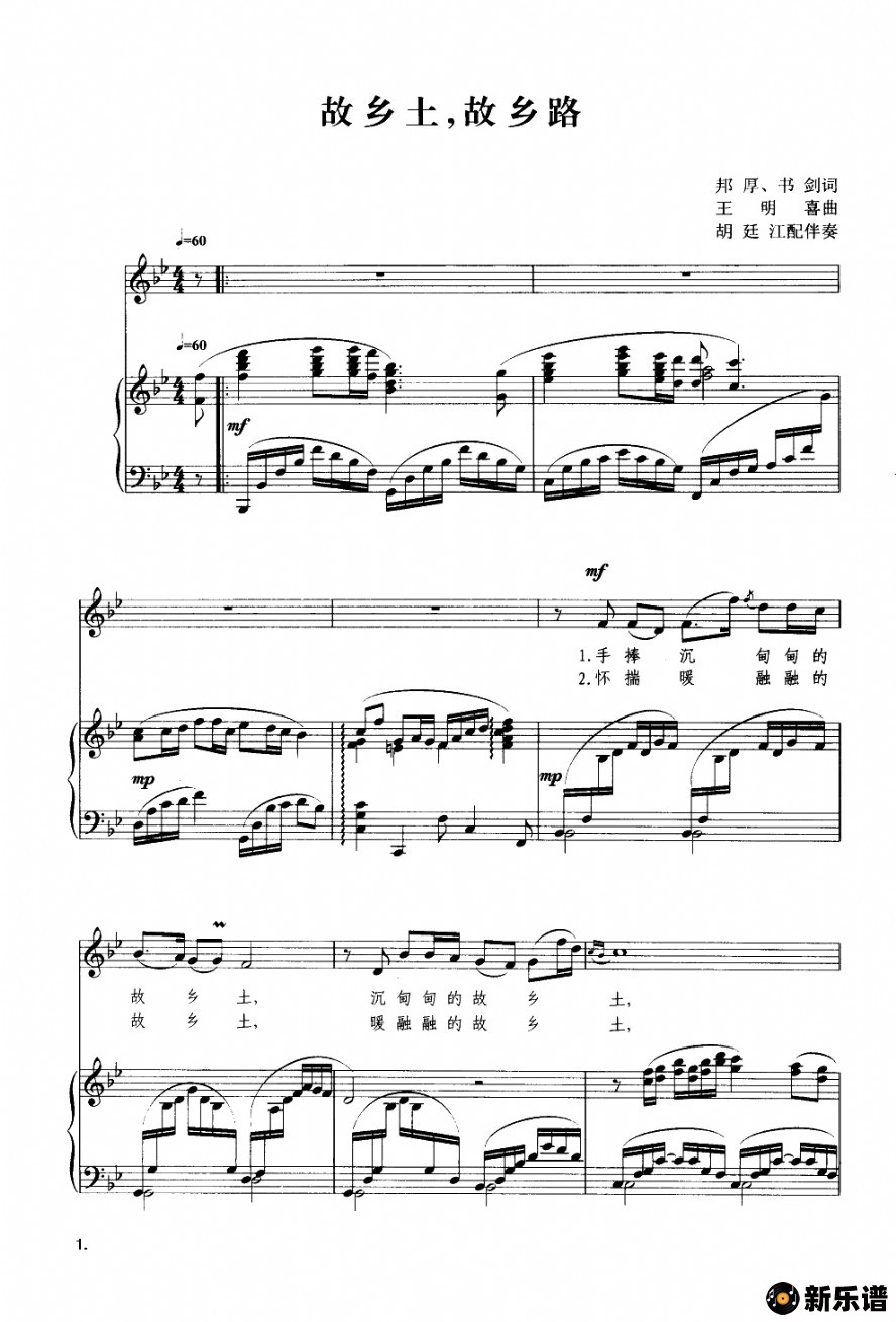 演唱的故乡土,故乡路(钢琴伴奏谱)歌词,故乡土,故乡路(钢琴伴奏谱)简谱.