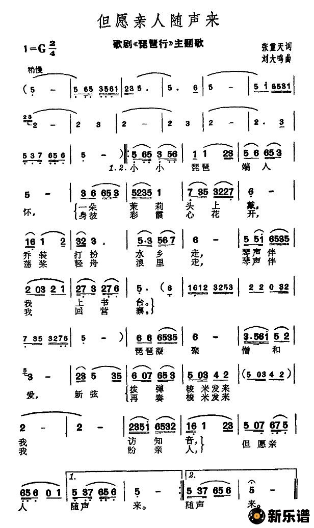> 但愿亲人随声来(歌剧《琵琶行》主题歌)简谱