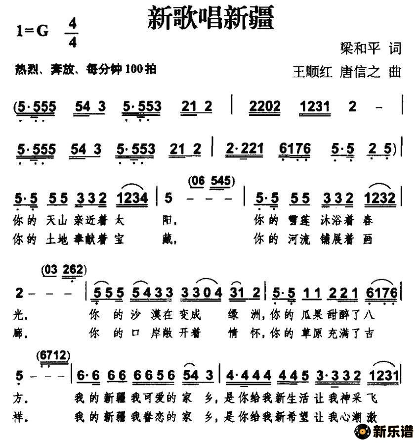 演唱的新歌唱新疆歌词,新歌唱新疆简谱.