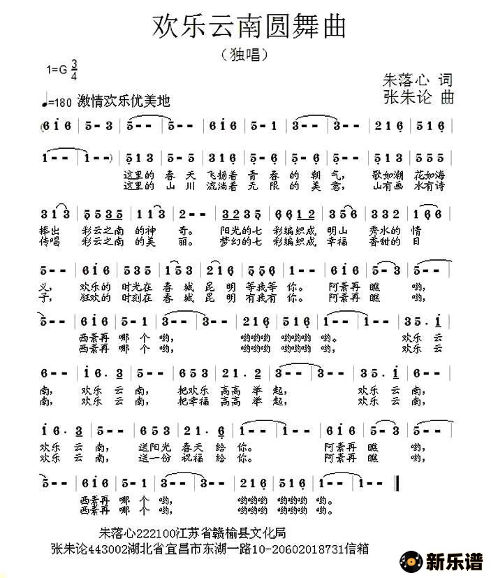 演唱的欢乐云南圆舞曲歌词,欢乐云南圆舞曲简谱.
