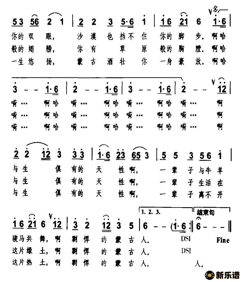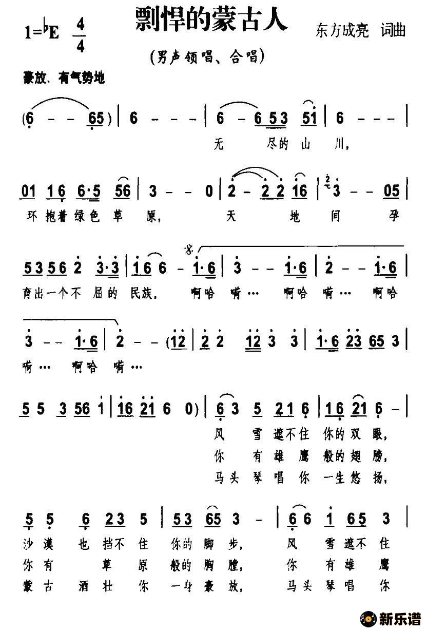 演唱的剽悍的蒙古人歌词,剽悍的蒙古人简谱.