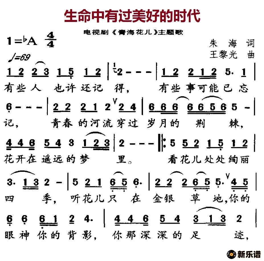 演唱的生命中有过美好的时代(电视剧《青海花儿》主题歌)歌词,生命中有过美好的时代(电视剧《青海花儿》主题歌)简谱.