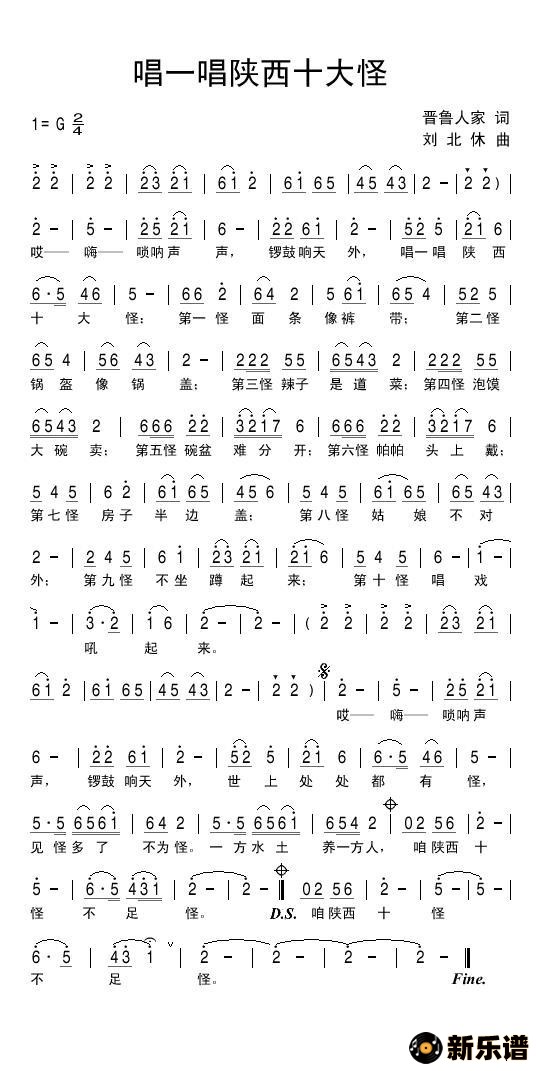 演唱的唱一唱陕西十大怪歌词,唱一唱陕西十大怪简谱.