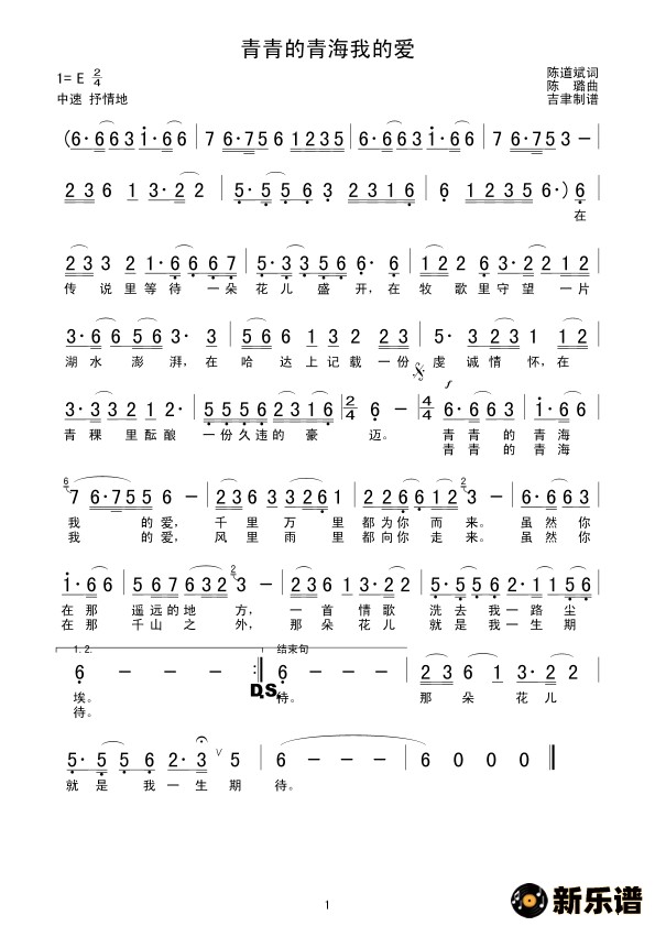 演唱的青青的青海我的爱歌词,青青的青海我的爱简谱.
