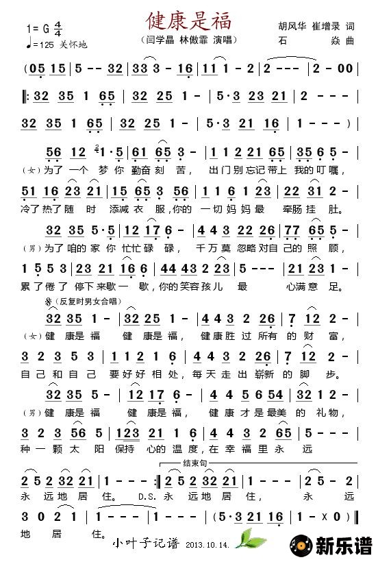 《健康是福》简谱 闫学晶/林傲霏-小叶子制谱