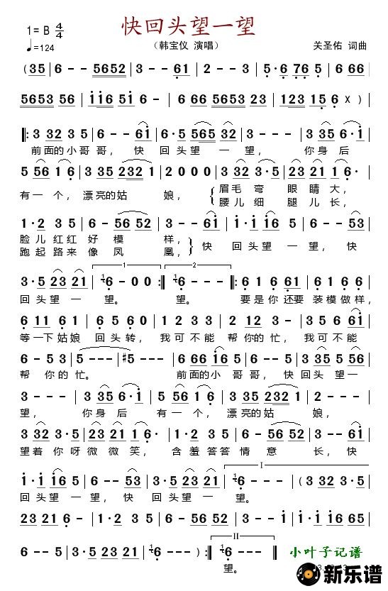 《快回头望一望》简谱 韩宝仪-小叶子制谱
