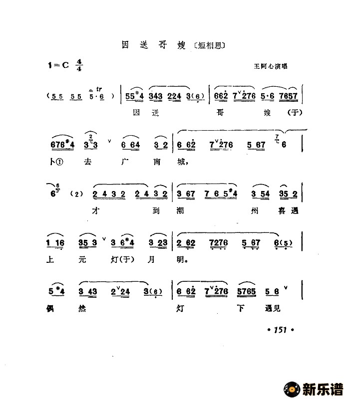 蔡伯文演唱的因送哥嫂(福建南音)歌词,因送哥嫂(福建南音)简谱.
