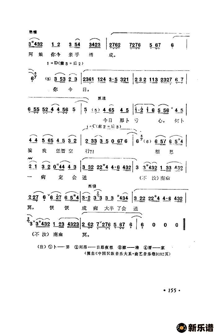 > 因送哥嫂(福建南音)简谱