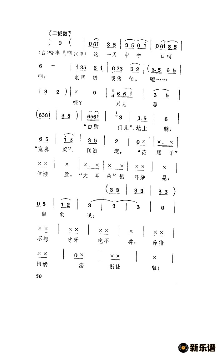 演唱的养猪阿奶(山东琴书)歌词,养猪阿奶(山东琴书)简谱.