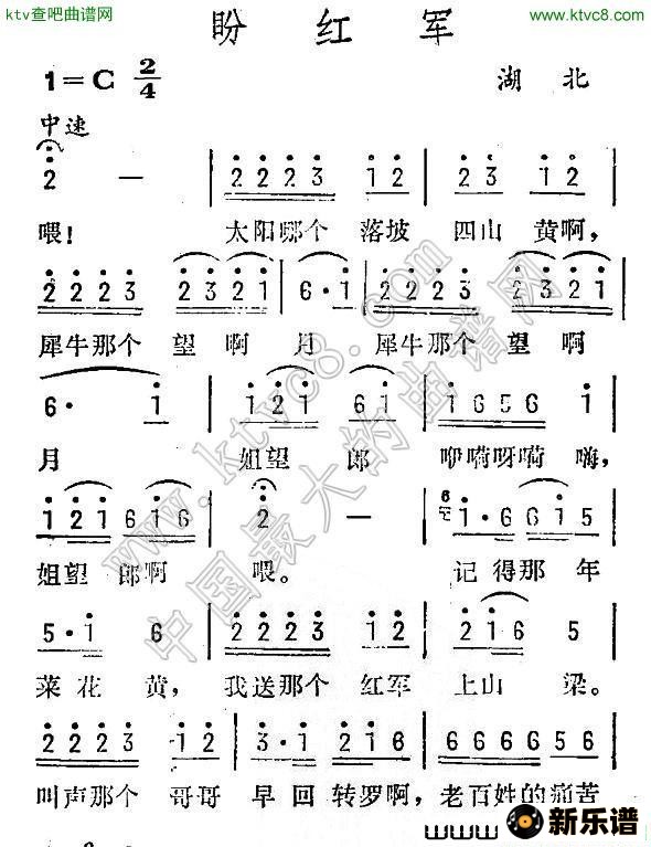 演唱的盼红军(湖北 民歌)歌词,盼红军(湖北 民歌)简谱.