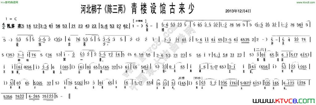 演唱的[河北梆子] 《陈三两》选段)歌词,[河北梆子] 《陈三两》选段)简谱.