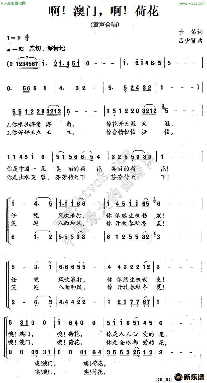演唱的啊!澳门,啊!荷花 吕少贤歌词,啊!澳门,啊!荷花 吕少贤简谱.