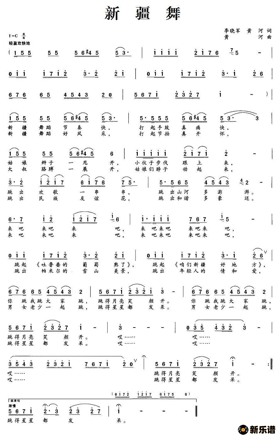 演唱的新疆舞歌词,新疆舞简谱.