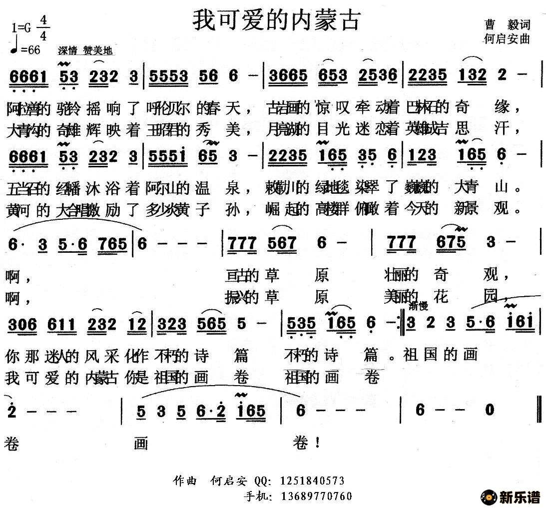 演唱的我可爱的内蒙古歌词,我可爱的内蒙古简谱.