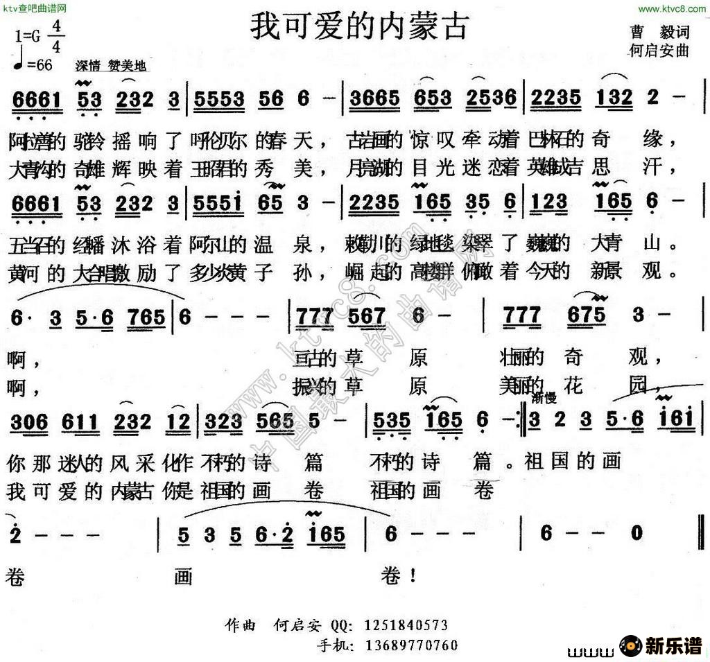 演唱的我可爱 的内蒙古歌词,我可爱 的内蒙古简谱.