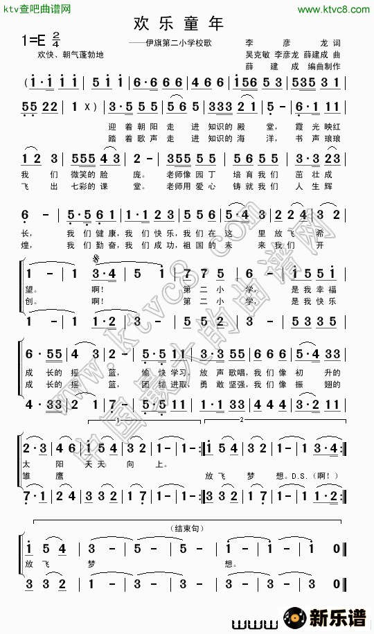 欢乐童年(内蒙古伊旗第二小学 校歌)/ 相关曲谱