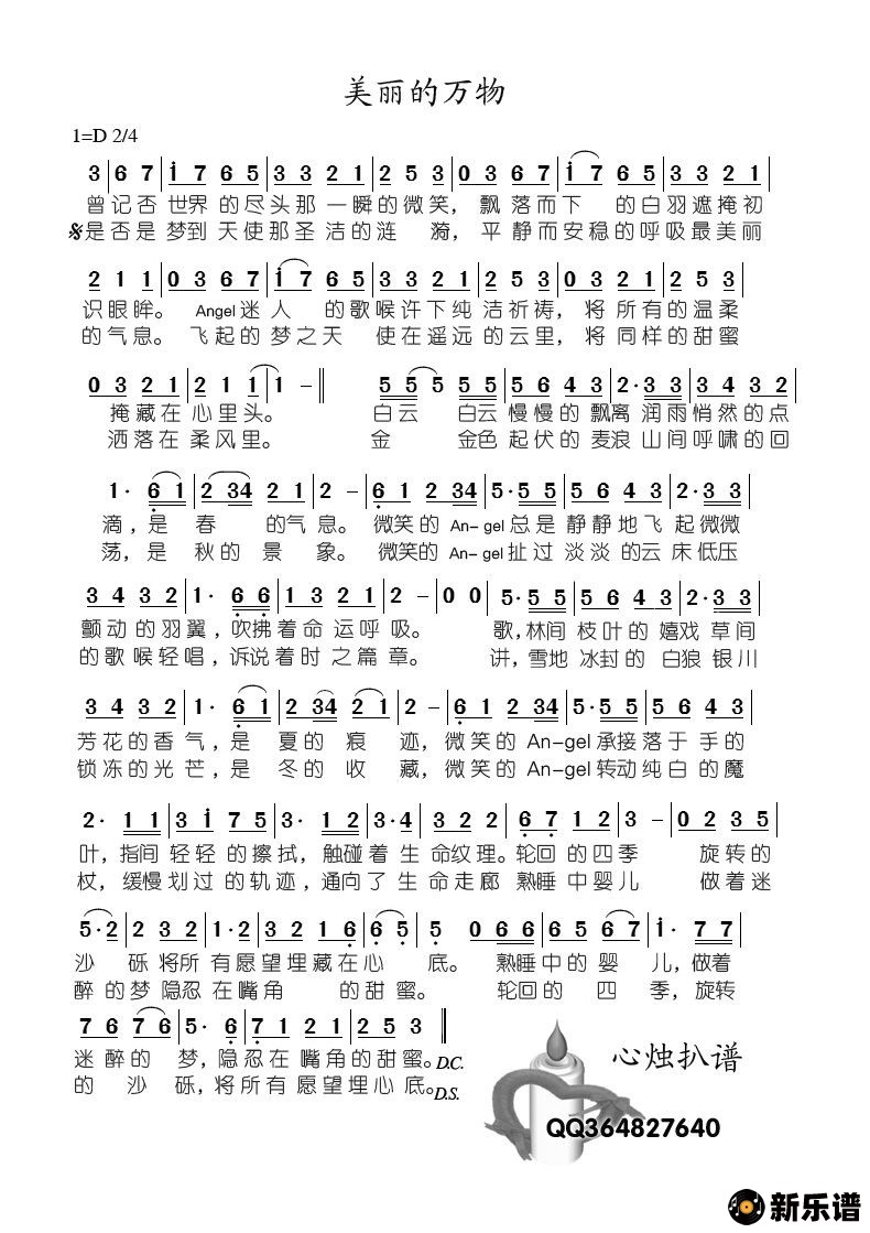 佚名演唱的美丽的万物歌词,美丽的万物简谱.