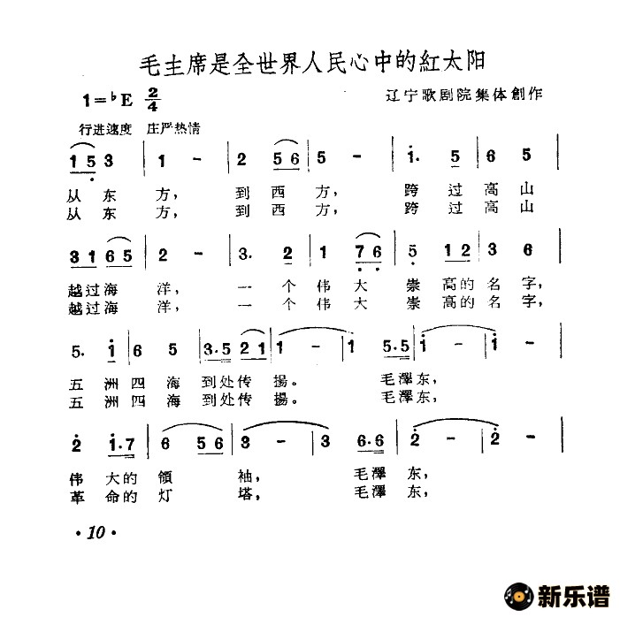 辽宁歌剧院演唱演唱的毛主席是全世界人民心中的红太阳歌词,毛主席是全世界人民心中的红太阳简谱.