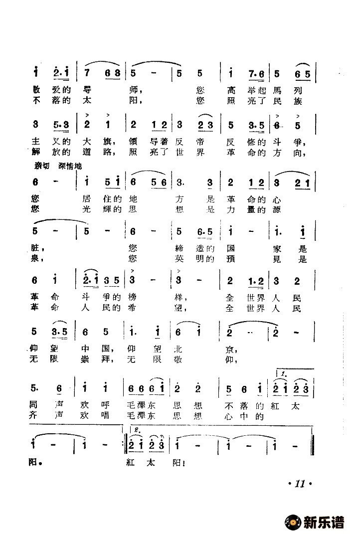 《毛主席是全世界人民心中的红太阳》简谱 辽宁歌剧院演唱