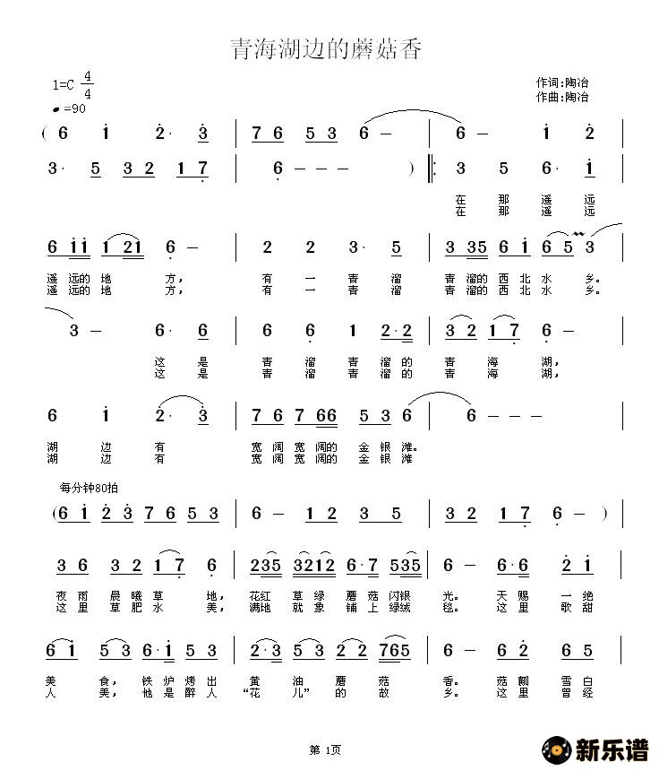 演唱的青海湖边的蘑菇香歌词,青海湖边的蘑菇香简谱.