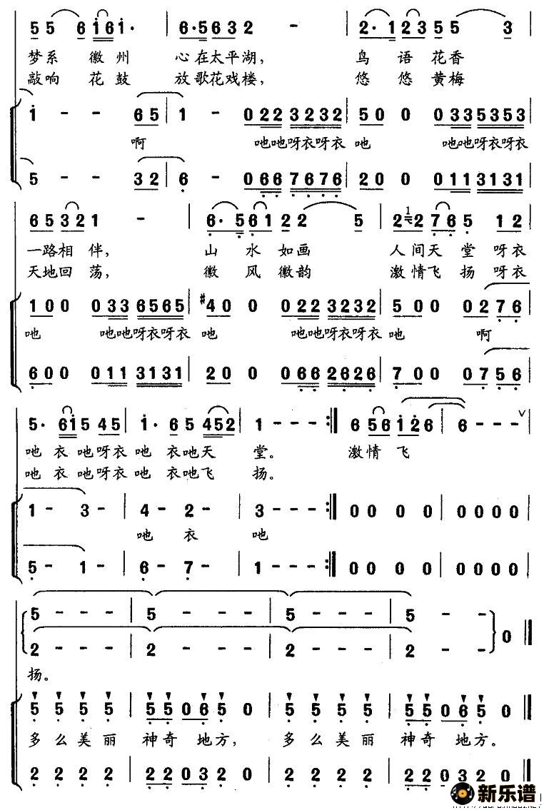 安徽,美丽神奇的地方/作词:陈雷 作曲:谢林义 相关曲谱