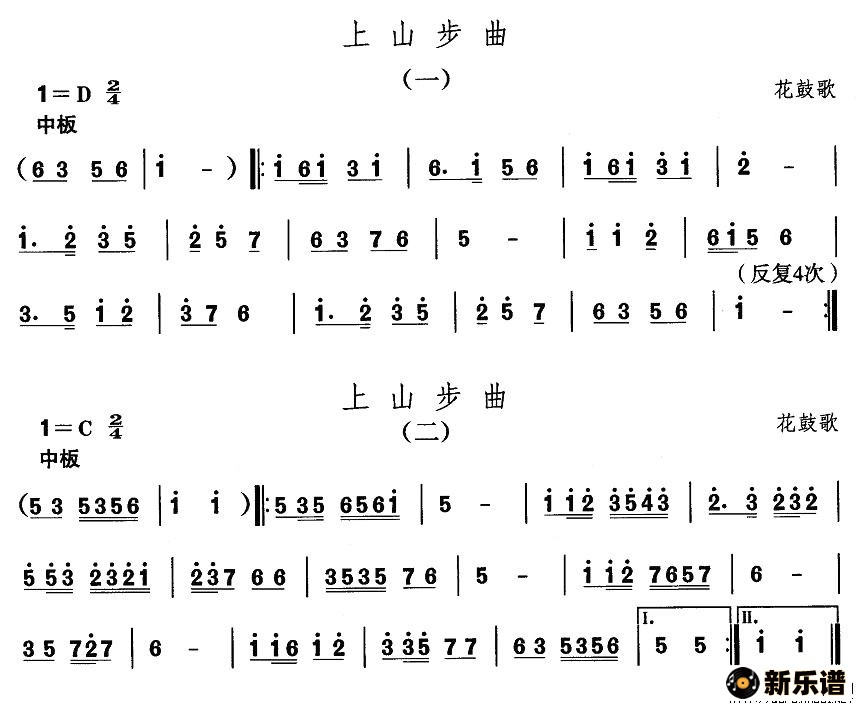 未知演唱的安徽花鼓灯:上山曲歌词,安徽花鼓灯:上山曲简谱.