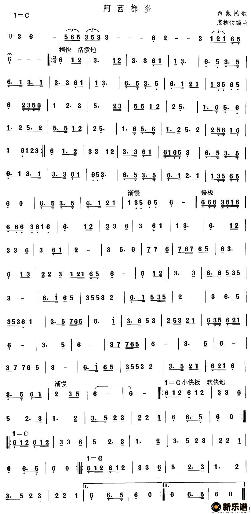 藏族舞蹈:阿西都多/未知 相关曲谱