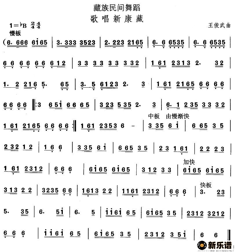 藏族舞蹈:歌唱新康藏/未知 相关曲谱
