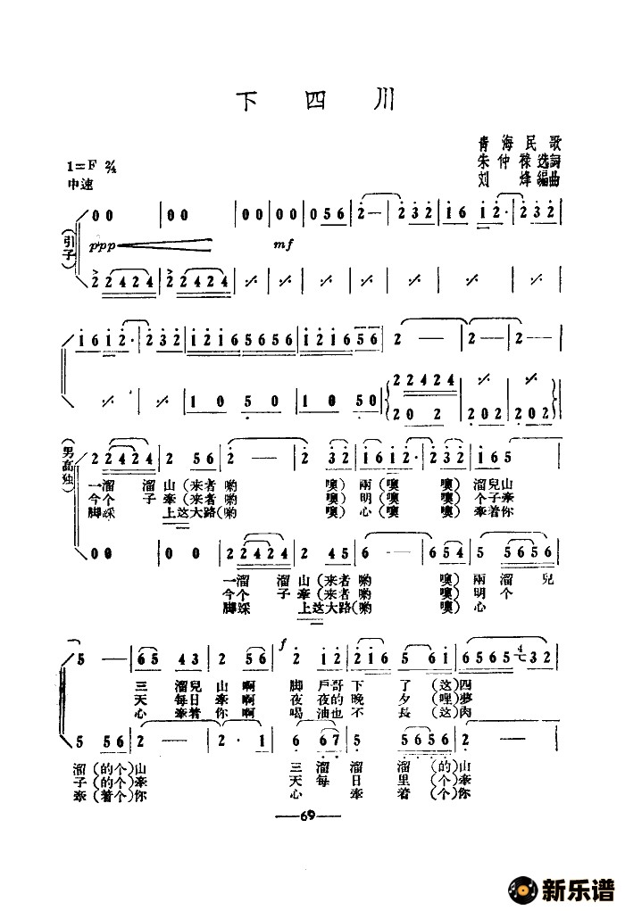 中国民歌合唱团 张建国领唱演唱的下四川(混声合唱)歌词,下四川(混声合唱)简谱.